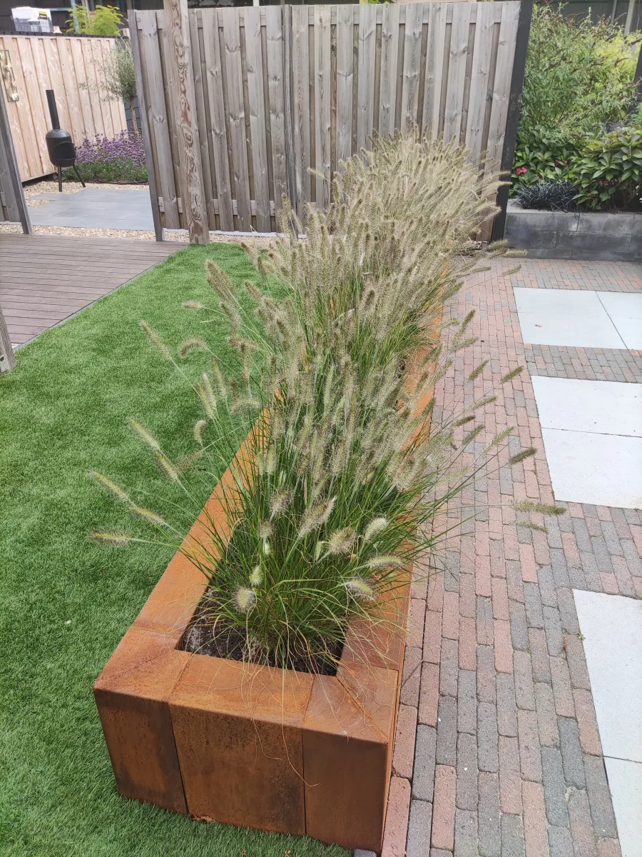 Wil jij jouw border of bloembak voorzien van een eigentijdse look & feel? Dan zijn de overzetranden van Cortenstaal de ideale oplossing om jouw muurelementen mee te bekleden. De overzetranden sluiten perfect aan op de maatvoering van de meest voorkomende stapelblokken. Deze is in de afmeting 500 x 450 x 120 mm.