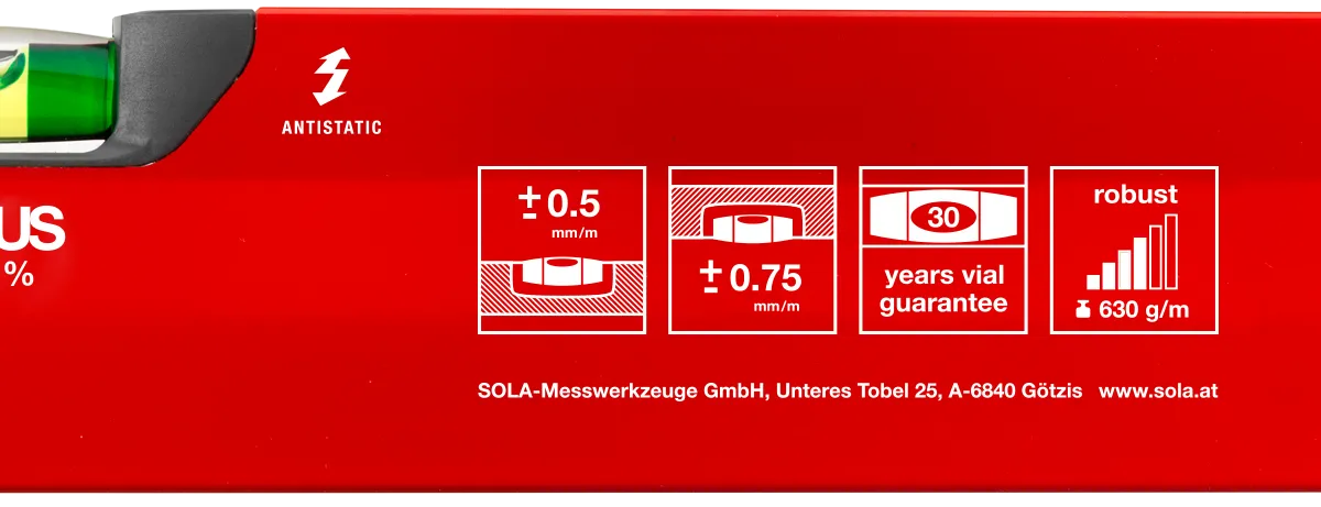 Aluminium is een duurzaam en lichtgewicht materiaal, waardoor deze waterpas gemakkelijk te hanteren is en lang meegaat. Het X-profiel ontwerp van de SOLA Alu-waterpas BigX van 30 cm zorgt ervoor dat het een betrouwbare en nauwkeurige keuze is voor het uitlijnen van verschillende objecten en oppervlakken.