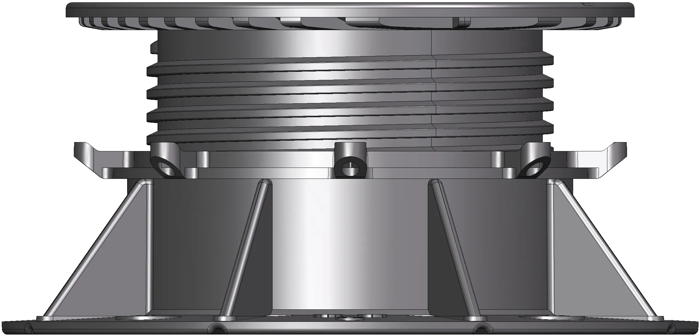 Wanneer de corrector onder de vloerdrager gemonteerd wordt, zorgt dit voor een loodrechte constructie van de vloer met een maximale stabiliteit en drukverdeling.