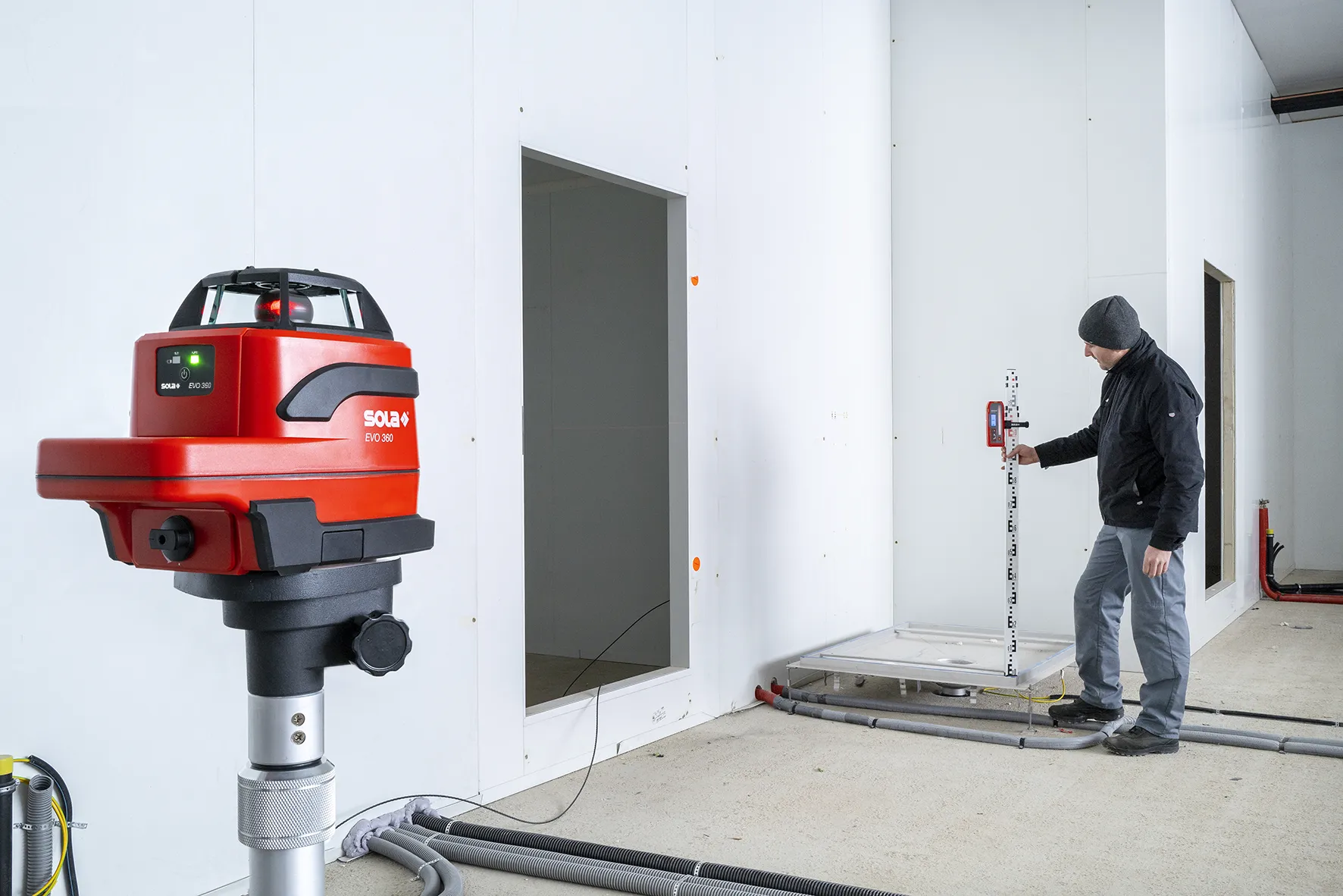 De EVO 360 is een nauwkeurige en gebruiksvriendelijke rotatielaser voor nauwkeurig horizontaal en verticaal nivelleren, zelfs over grote afstanden. De EVO 360 kent diverse toepassingsmogelijkheden, de eenknopsbediening spreekt voor zich. De zelfnivellering begint automatisch wanneer het apparaat in bedrijf wordt gesteld. De EVO 360 compenseert gemakkelijk hellingen tot 5°. Dankzij beschermingsklasse IP66 kan zowel de EVO 360 als de handontvanger REC RRD1 binnen én buiten worden gebruikt.