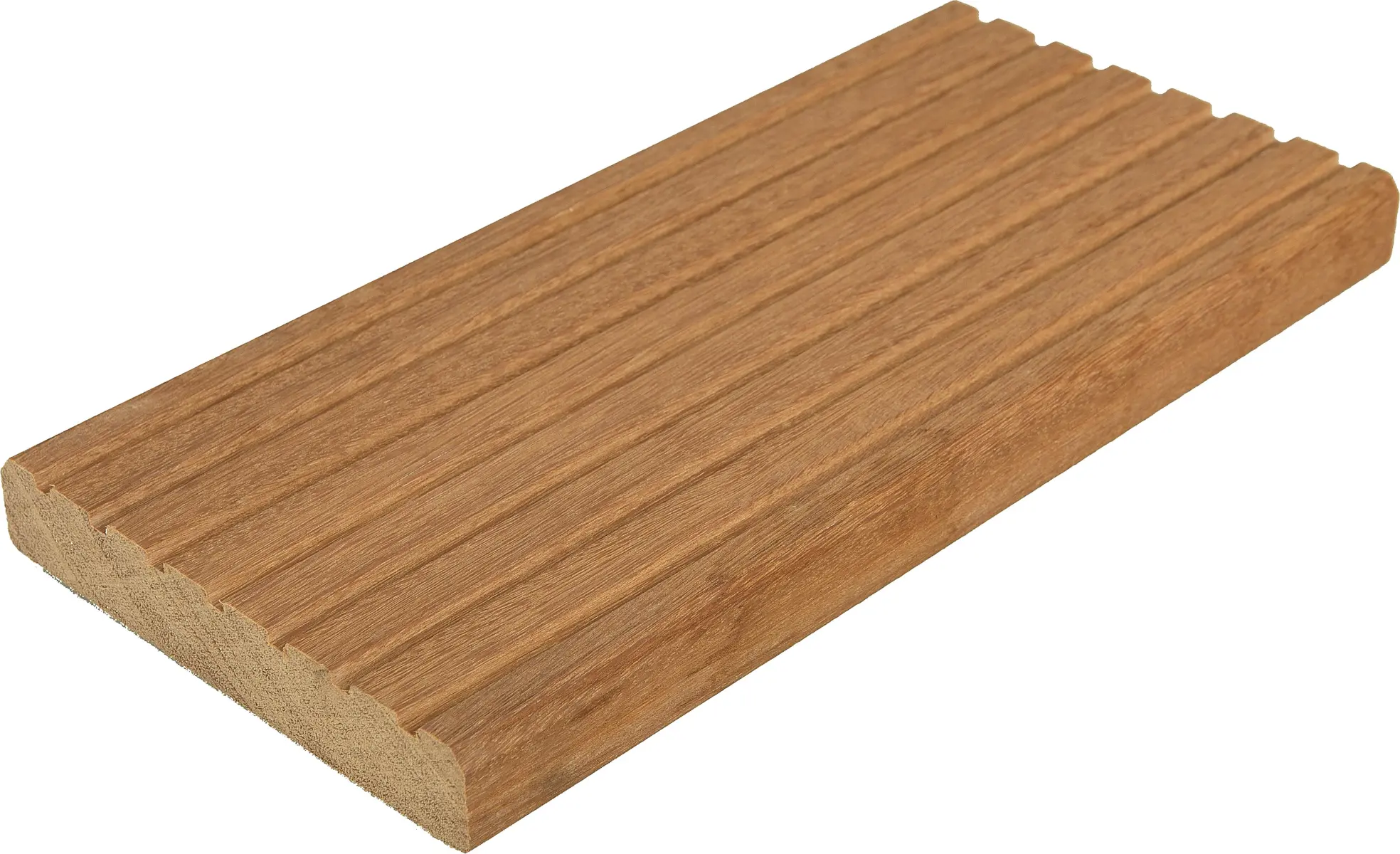Bangkirai, ook wel Yellow Balau genoemd, is door de hoge dichtheid een zeer stevige en harde houtsoort. Het kunstmatig droogproces vóór het schaven zorgt voor optimale kwaliteit en stabiliteit. Bangkirai vlonderplanken vertonen weinig werking en nemen nauwelijks vocht en vuil op. Ze worden niet snel glad en zijn onderhoudsarm. Bovendien kun je zelf kiezen of de glad geschaafde zijde of de geprofileerde groevenzijde naar boven gericht is. Welke optie je ook kiest, Bangkirai biedt een duurzame en stijlvolle oplossing voor elk terras.