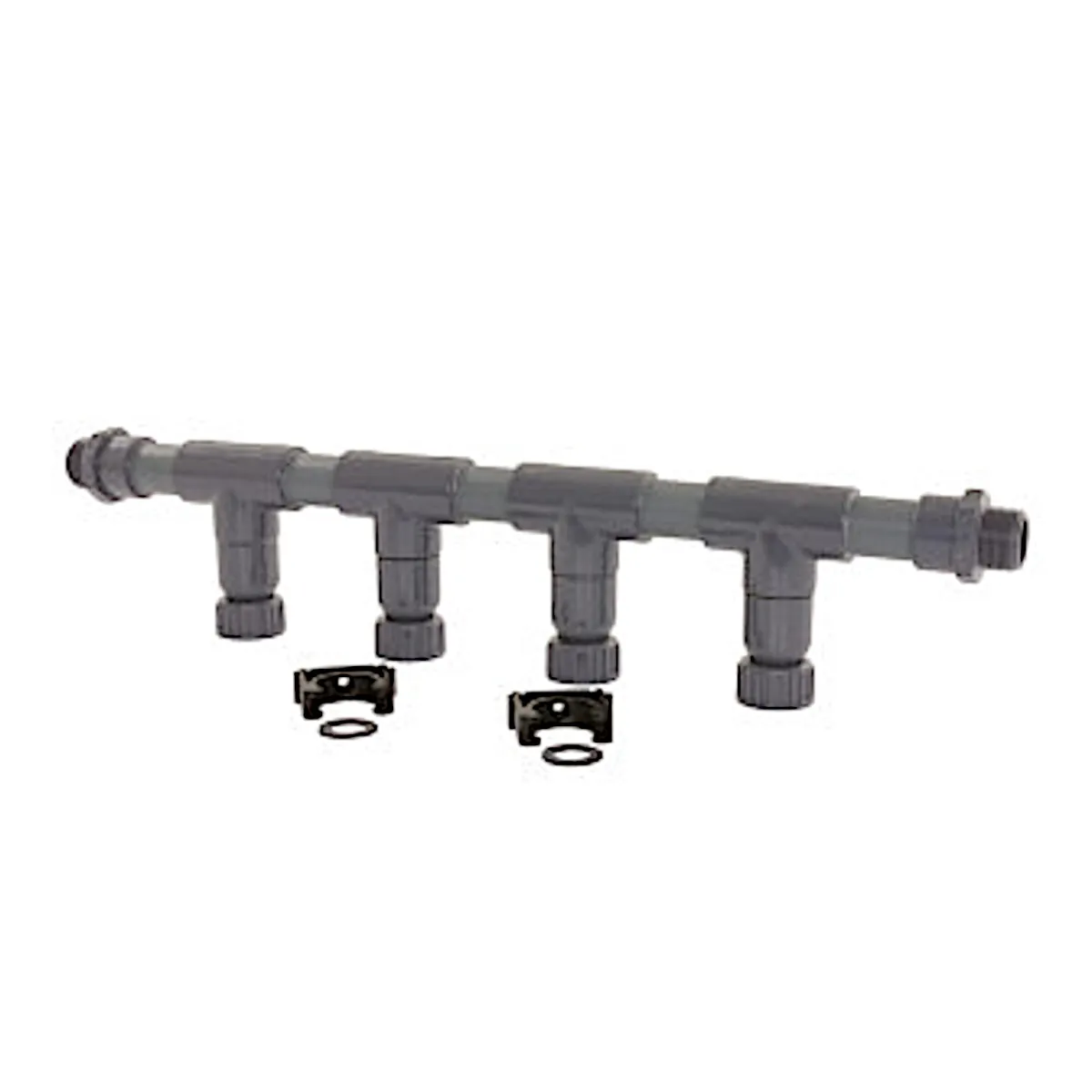 Deze verdeler heeft aan beide zijden een 1″ buitendraadaansluiting, de aftakkingen hebben een 1″ binnendraadaansluiting.