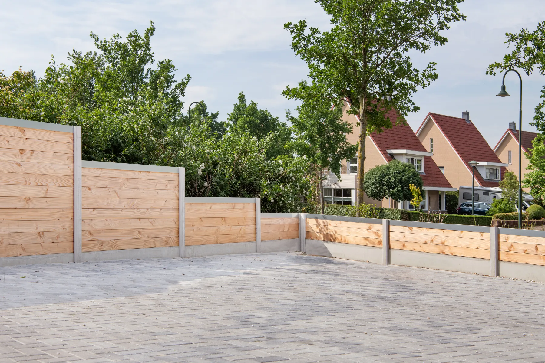 Deze wit/grijze betonnen sleuf Tussenpaal 10x10x275cm met een sponning van 30mm breed over een lengte van 173cm is onderdeel van het Zaan concept. In de sponning kunnen speciale houten stapelprofielen geplaatst worden. Onder de sponning van 173 cm zit een bredere sleuf van 45mm breed en 260mm hoog waarin een speciale gladde onderplaat kan worden geplaatst van 24cm hoog en 180cm breed. Deze onderplaat van 180cm breed dient te worden gebruikt in combinatie met de 180cm lange stapelprofielen welke in diverse houtsoorten beschikbaar zijn.