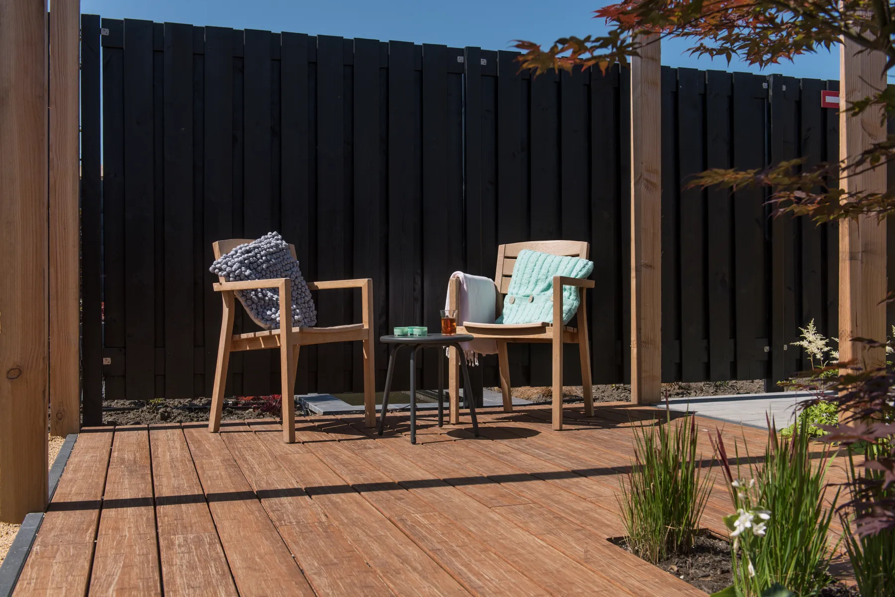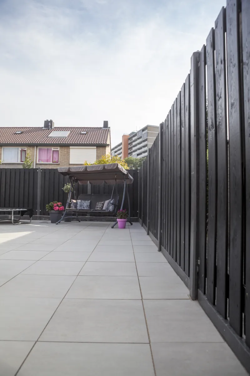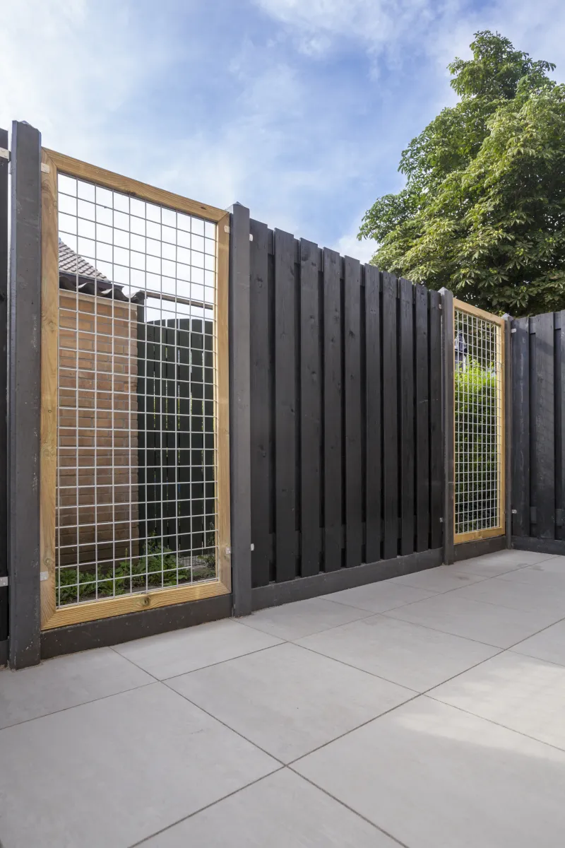 Zwart gespoten tuinschermen zijn duurzaam en verlengen de levensduur dankzij een beschermende basislaag. De zwarte kleur kan echter de gevoeligheid van scheurvorming vergroten. Periodiek onderhoud kan de levernsduur verder verlengen en de esthetische kwaliteiten behouden.